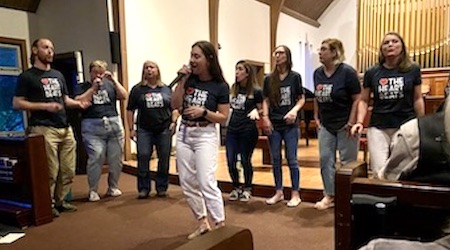 The ‘Hungry for Music’ concert was a success beyond expectations. The church was full and the performers were wonderful. We give enormous thanks to those who donated their talent. Two soloists, Peter Clemente on guitar and Osman Bilsel on piano, began the concert with some beautiful classical pieces. Laura and Joe Papandrea delighted the crowd with some global music on Violin and Bayan Accordion, including a robust tango. The concert then pivoted to a lighter fare. Erik Gladwin sang, including a tribute to Mother’s Day accompanied on his guitar. He also sang to an azalea plant named Rose (you had to be there). The Heart Beats, an acapella singing group, was fabulous and featured a solo by our own Jena (Bastardo) DelCid. Cassie Blanchett closed the musical evening with her lovely soprano voice. Thanks also to all who donated sweets and drinks for the after party. We raised over $2,400 for our feeding ministries. Apparently, many people were hungry for music! Deacon Jane and Erik Gladwin organized and hosted this event. Erik also was in charge of sound. Thanks to everyone who attended and supported in other ways.
